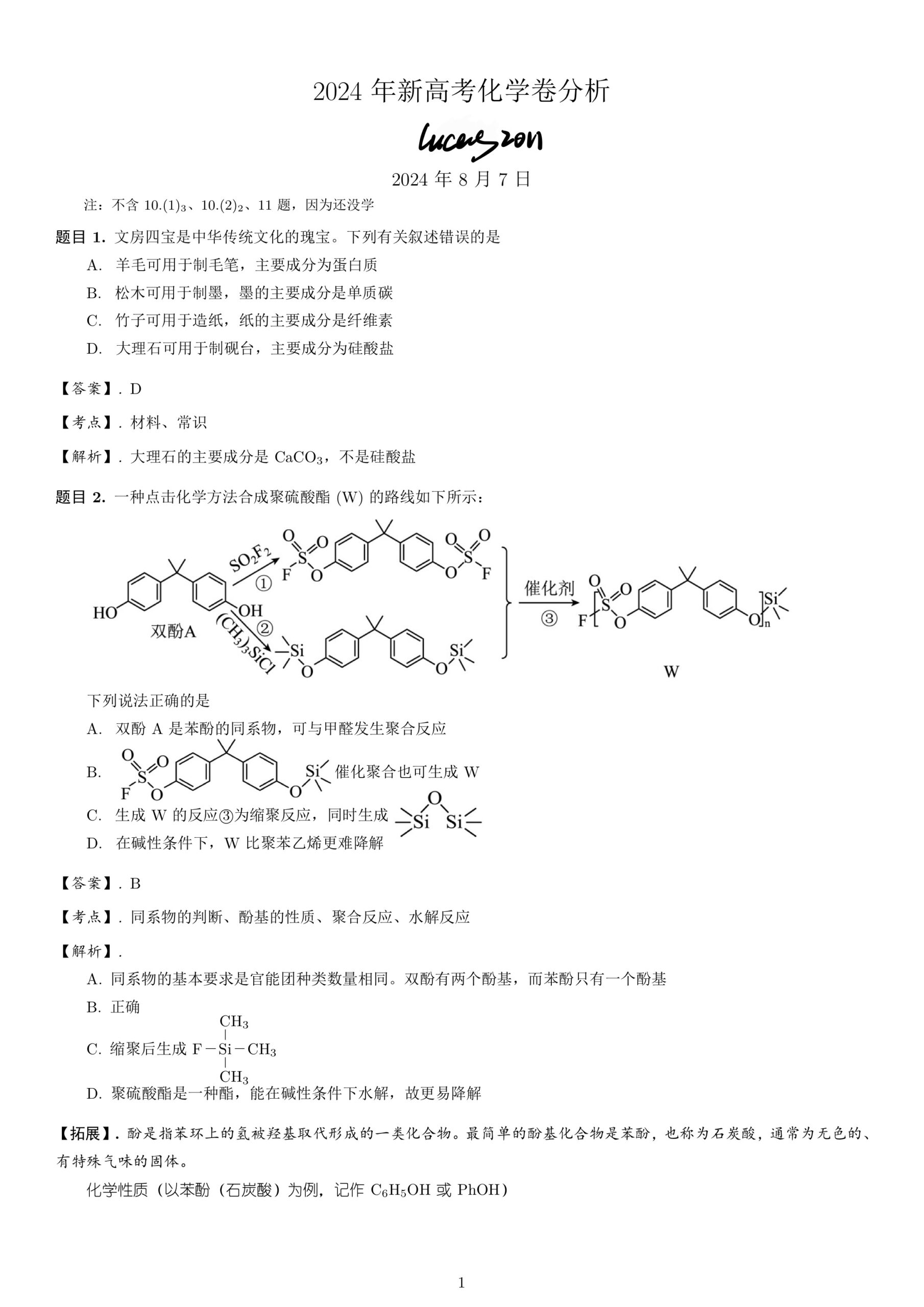 \title{\vspace{-2em}2024年新高考化学卷分析\vspace{-0.5em}}