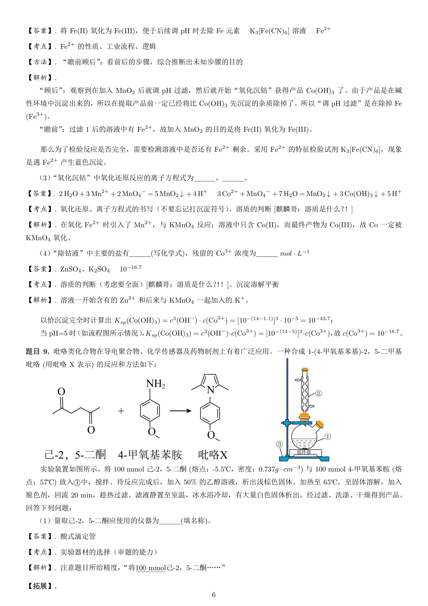 \item \textbf{知识的综合运用:}与平时的“单元测验”类的考试不同,考试所设计的范围广,一道题目中可能涵盖很多知识点,需要我们对学到的知识进行综合运用,如用化学平衡的定量计算来解释“弱制强”的特例等。