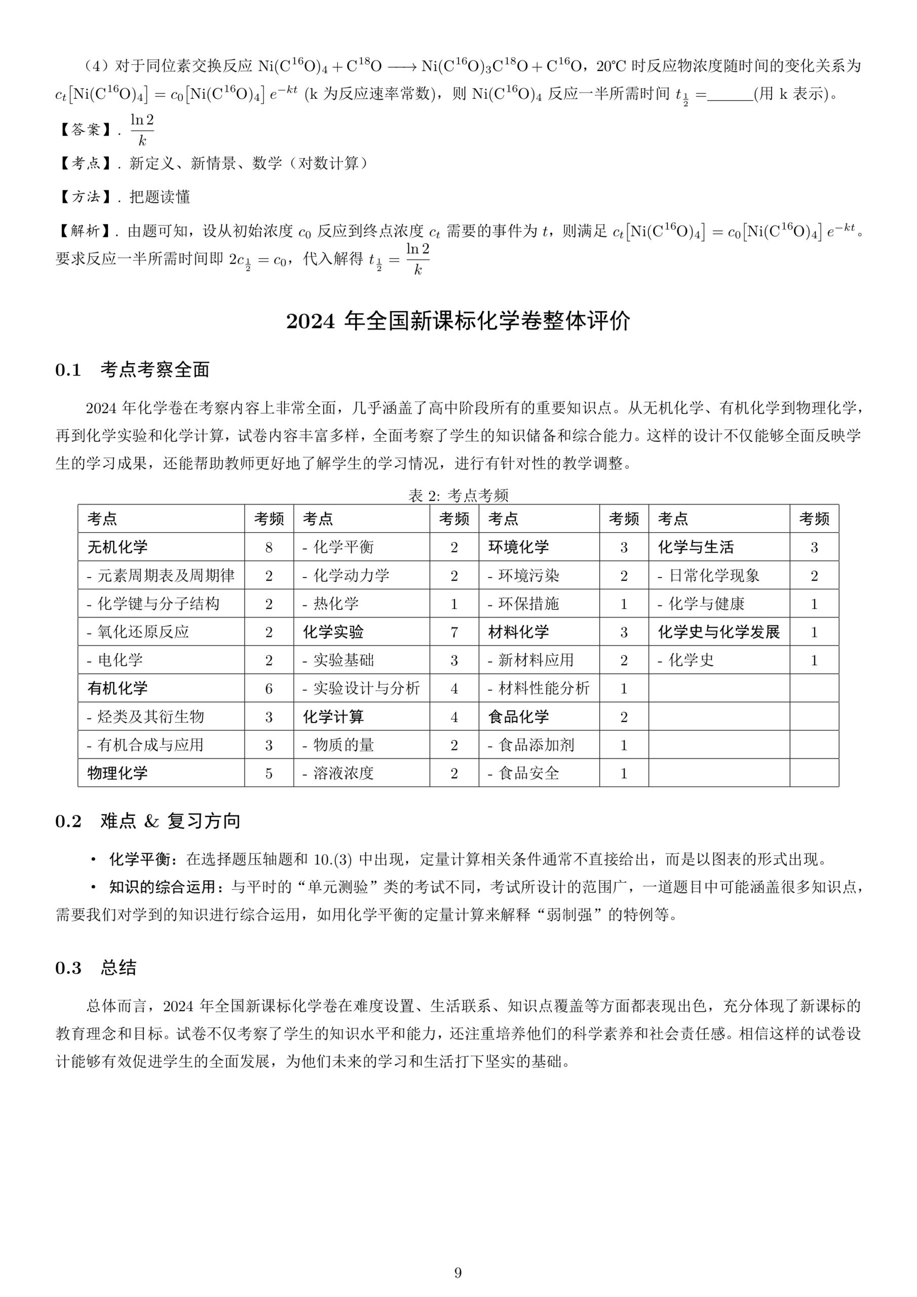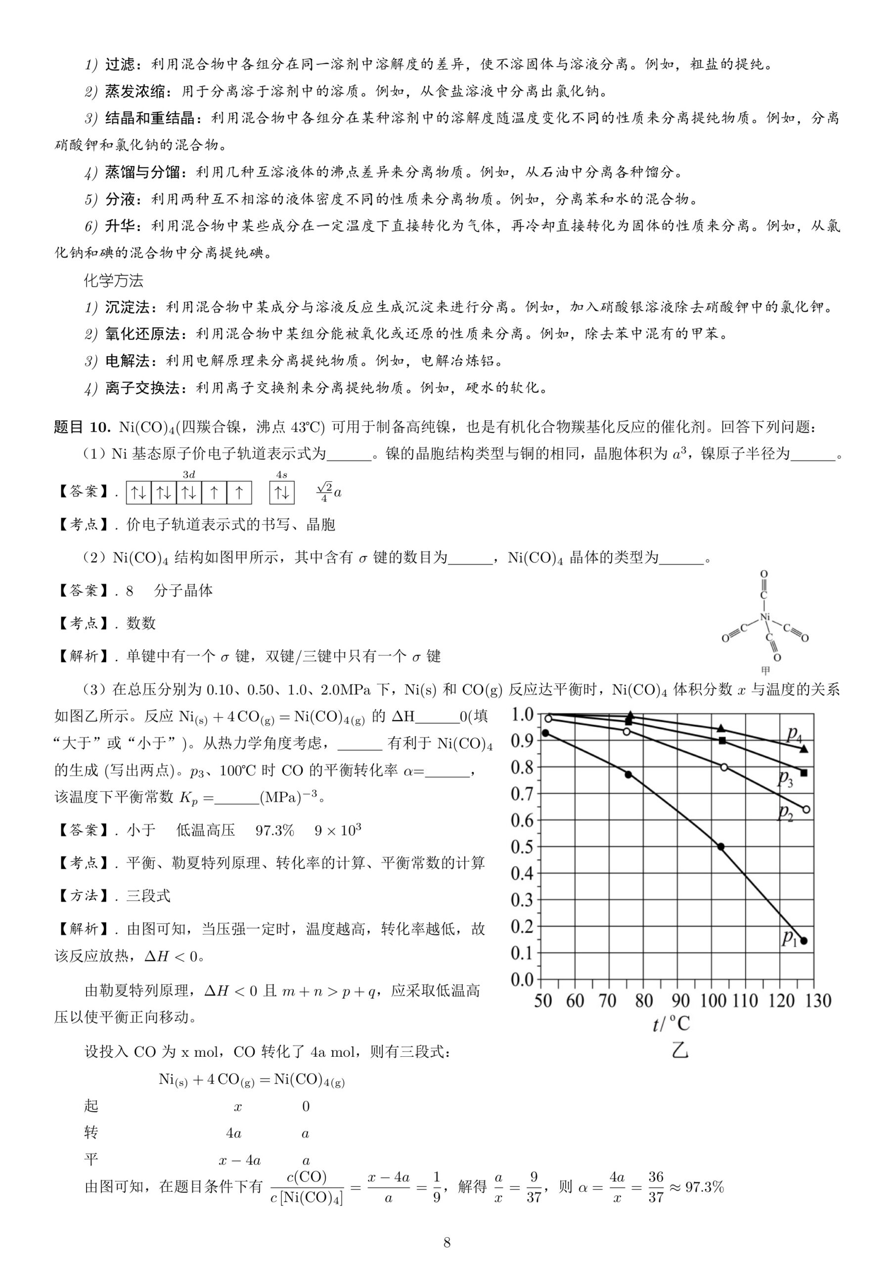 \item \textbf{化学平衡:}在选择题压轴题和10.(3)中出现,定量计算相关条件通常不直接给出,而是以图表的形式出现。