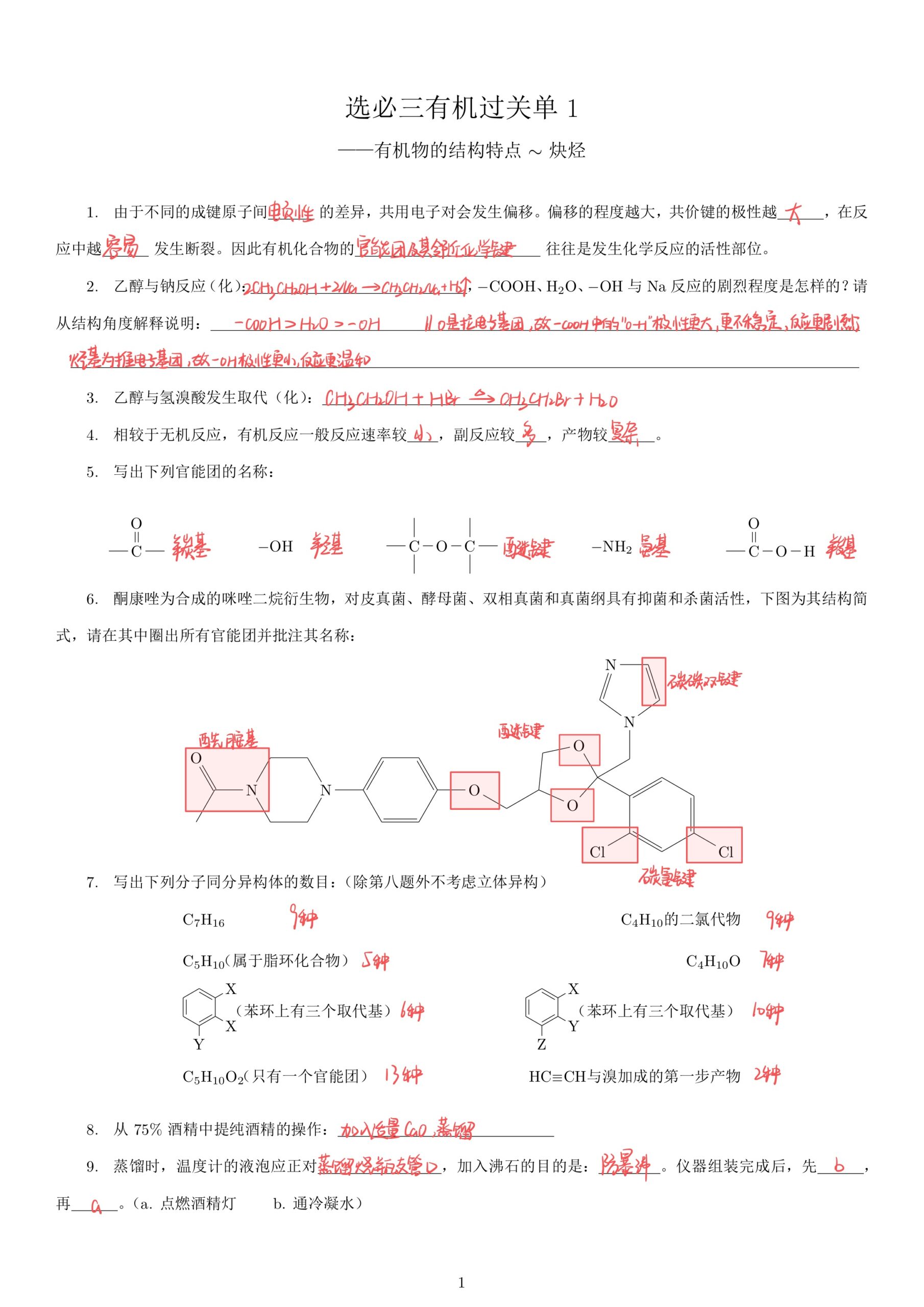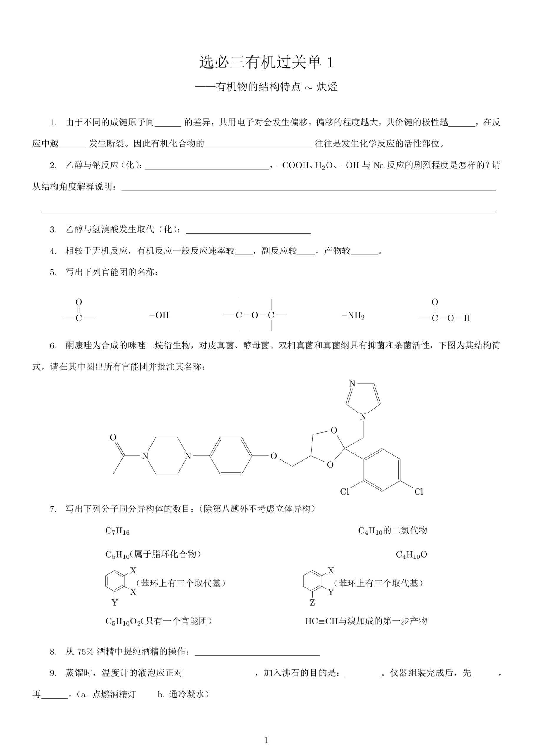 \title{\vspace{-2em}选必三有机过关单1\vspace{-1em}}