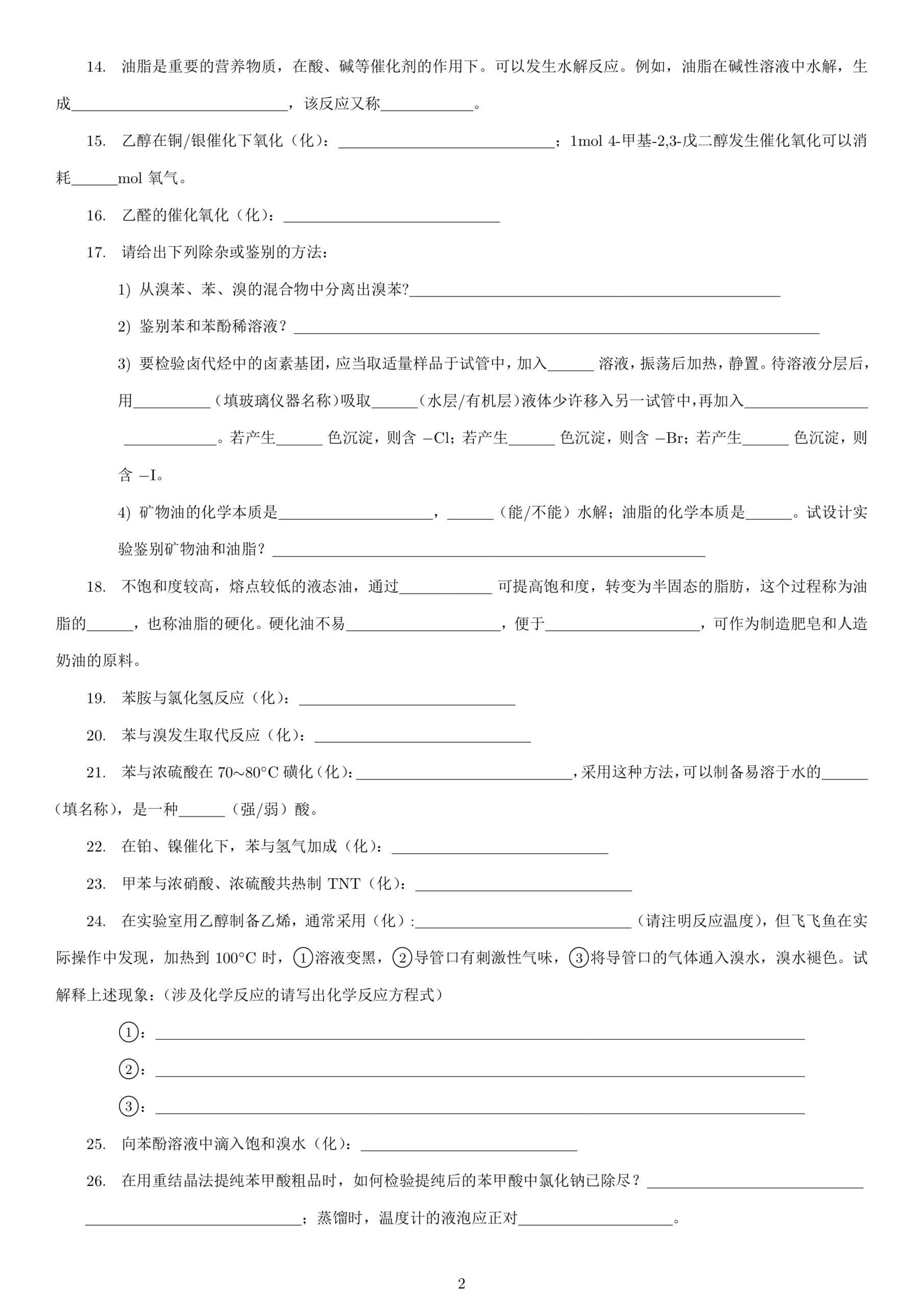 2. 标注数字的表示答案数,例如(2$\times$化)表示答案为两个化学方程式。